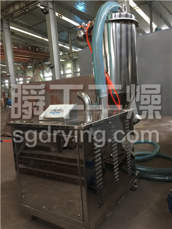 该机是国内最为先进、理想、完善的粉末、颗粒、粉粒料混合料的真空输送设备。真空加料机能自动地将各种物料输送到包装机、注塑机、粉碎机等设备的料斗中,也能直接把混合的物料输送到混合机(如V型混合机、二维混合机、三维混合机等)中,减轻了工人劳动强度,解决了加料时粉尘外溢等问题,是制药厂、食品厂通过GMP认证、促进清洁、文明生产的首选设备。