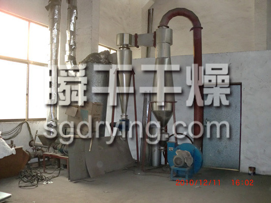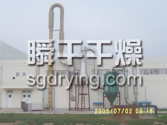 带动湿物料,使湿物料悬浮在热空气中,这样强化了整个干燥过程,提高了传热传质的速率,经过气流干燥的物料,非结合水分几乎可以全部除去(例如:淀粉等物料进料含水量≤40%左右,成品出料可为13.5%), 并且所干燥的物料,不会产生变质现象,产量可比一般干燥机干燥有显著提高,用户可在短期内取得较高的经济效益。