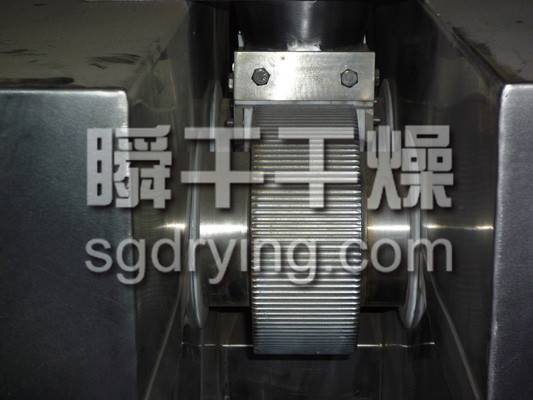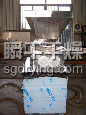 挤压造粒的形式可以有对辊式和轮辗式两种,对辊式挤压是先压成大块,再破碎成颗粒,这样装置的能力大、颗粒强度高、能耗低,对辊挤压在国外使用广泛。轮辗式是在辊表面直接做成有穴槽型的形状,一次挤成成型颗粒。产品强度较低有时需添加粘结剂。适合做有机肥和复合肥等颗粒肥料。
