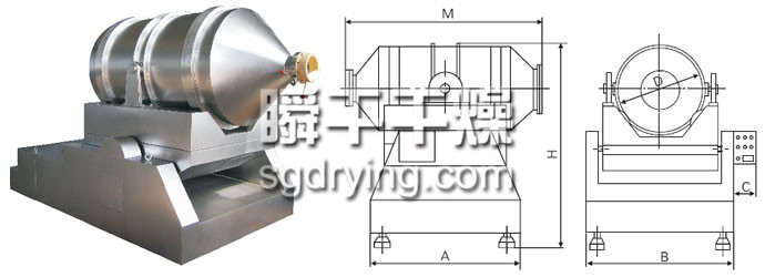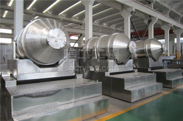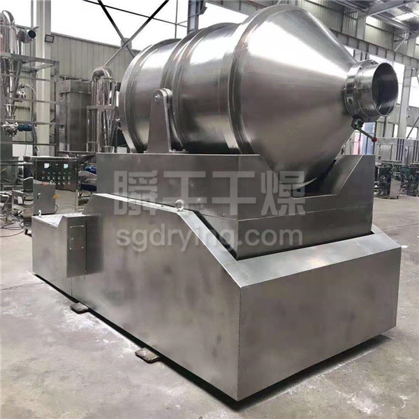 EYH二维混料机的转筒可同时进行二个运动,一个为转筒的转动,另一个为转筒随摆动架的摆动。被混合物料在转筒内随转筒转动、翻转、混合的同时,又随转筒的摆动而发生左右来回的掺混运动,在这两个运动的共同作用下,物料在短时间内得到充分的混合。EYH二维混料机适合所有粉、粒状物料的混合。