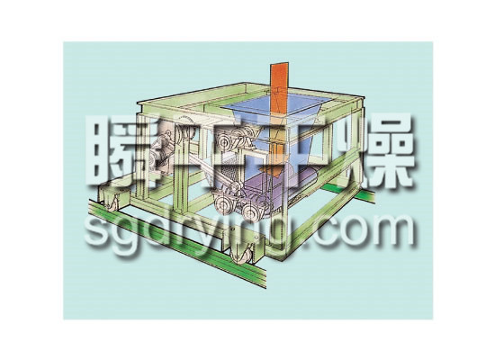 ◎槽形成型机: 由加料斗和刻有槽的二根辊子构成。以增大物料表面积的造粒为目的。物料被内侧运转的辊子吸入,被反转的外侧刮刀切成粒状。