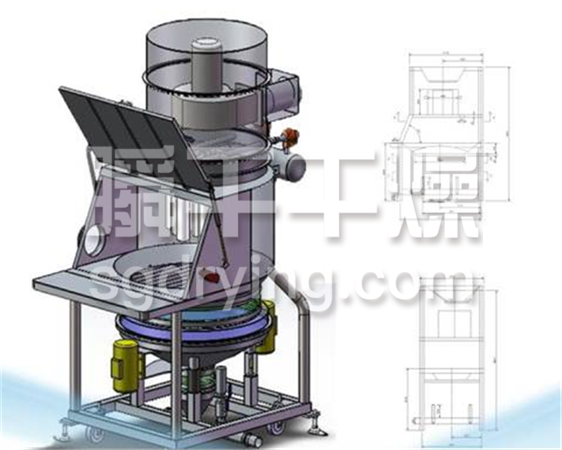无尘投料站由投料平台、卸料仓、除尘系统、振动筛等部件组成。