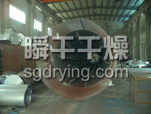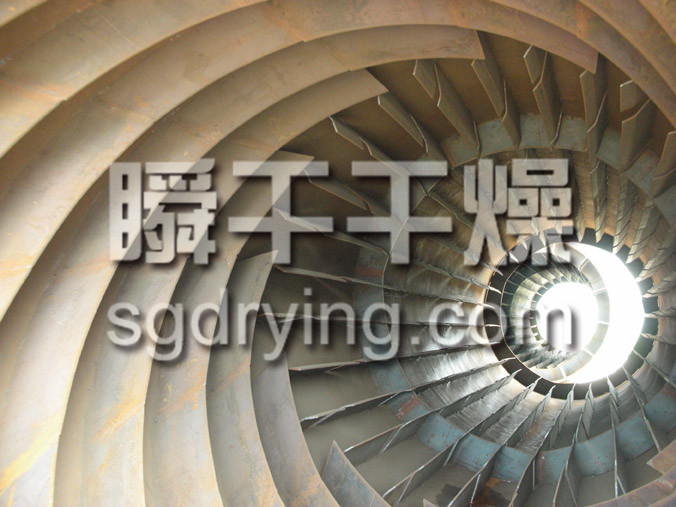 湿物料从干燥机一端投入后,在内筒均布的抄板器翻动下,物料在干燥器内均匀分布与分散,并与并流(逆流)的热空气充分接触,加快了干燥传热,传至推动力。在干燥过程中,物料在带有倾斜度的抄板和热气流的作用下,可调控地运动至干燥机另一段星形卸料阀排出成品。
