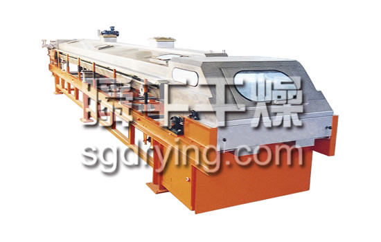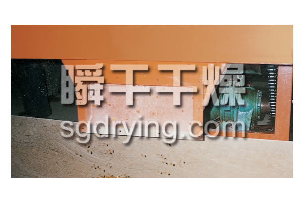 该机主要由落料模造粒成型机头,冷却输送不锈钢带及带轮、喷淋冷却系统、传动系统、保温装置、机架、刮刀等组成。落料模造粒机头主要由机头模套和机头芯轴等组成。喷淋冷却系统主要由喷头、盛水池等组成。传动系统主要由减速箱(减速器)调速电机等组成。