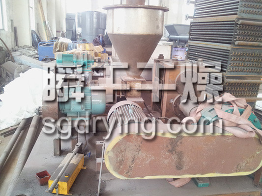 挤压造粒的形式可以有对辊式和轮辗式两种,对辊式挤压是先压成大块,再破碎成颗粒,这样装置的能力大、颗粒强度高、能耗低,对辊挤压在国外使用广泛。轮辗式是在辊表面直接做成有穴槽型的形状,一次挤成成型颗粒。产品强度较低有时需添加粘结剂。适合做有机肥和复合肥等颗粒肥料。