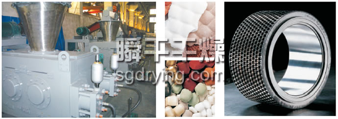 挤压造粒是一种较新的干法造粒生产复合肥料的工艺。挤压造粒在肥料领域最早应用于氯化钾的造粒,用于掺混肥料(BB肥)所需的颗粒状(1-4mm)氯化钾基本都采用挤压法生产。近年来,挤压造粒用于生产复混肥料在国内得到了较快的发展。