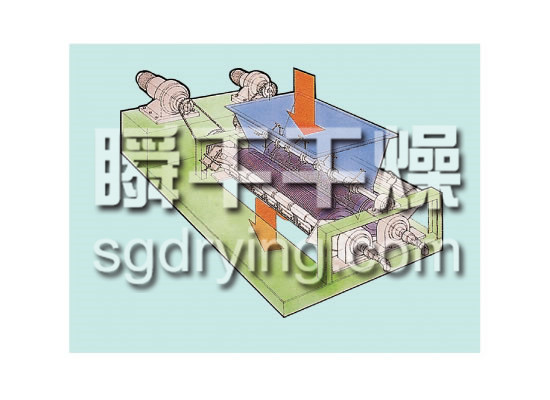 ◎槽形成型机: 由加料斗和刻有槽的二根辊子构成。以增大物料表面积的造粒为目的。物料被内侧运转的辊子吸入,被反转的外侧刮刀切成粒状。